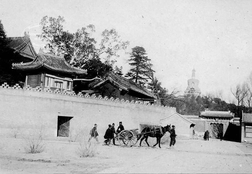 - Archives "Photos" FDE/CDG - Libellé au dos de la photo: "Mars 1901 - Entrée de la Rotonde côté des écuries; devant une voiture avec des soldats italiens; le Péta à l'horizon".