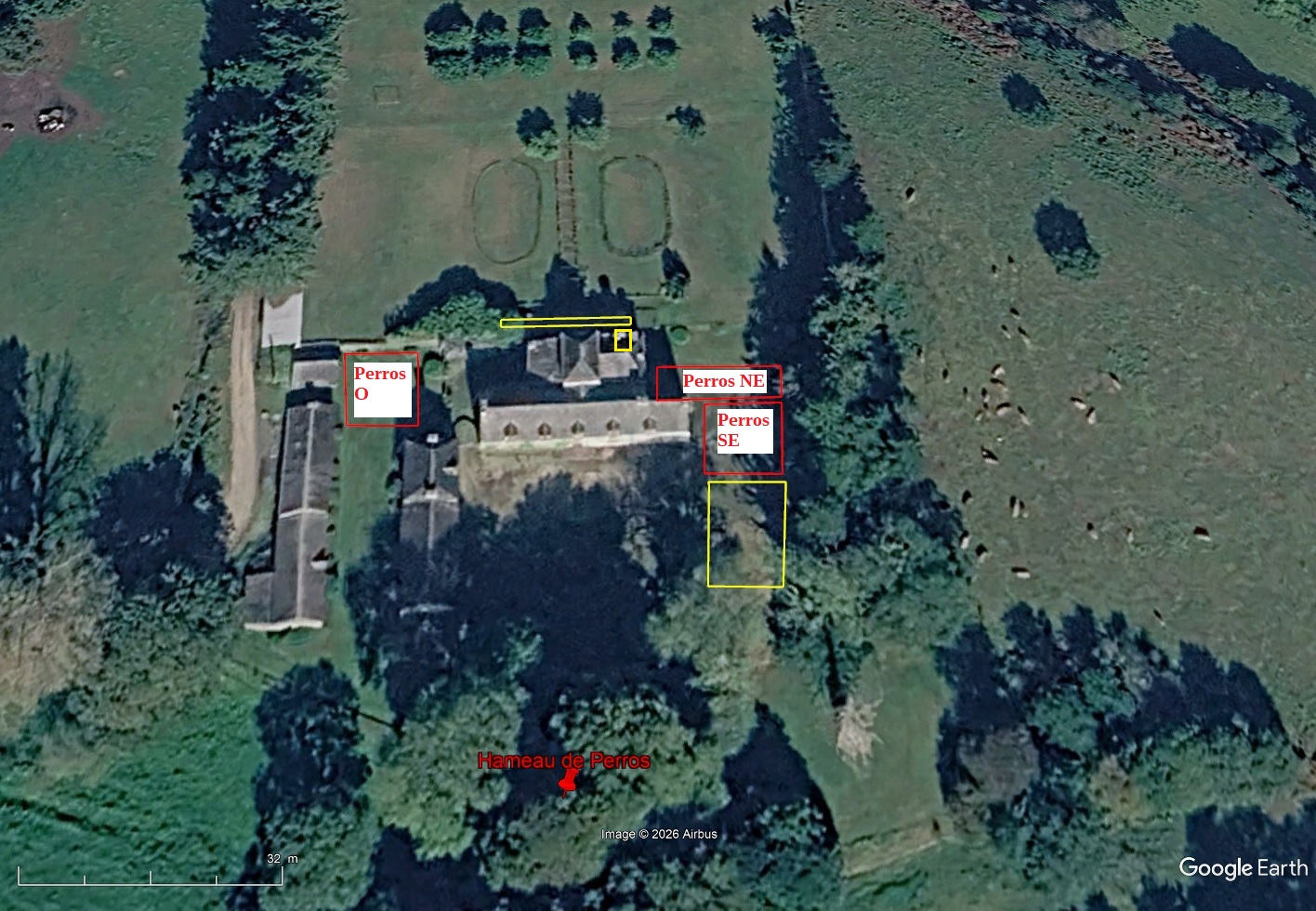 Date image satellite 5/2019 (meilleur cadrage en Y pour cuisine; sur 10 ans, manoir change de position de quelques m) / Cadrage XY GPS à déplacer d'environ 3.5m vers Nord