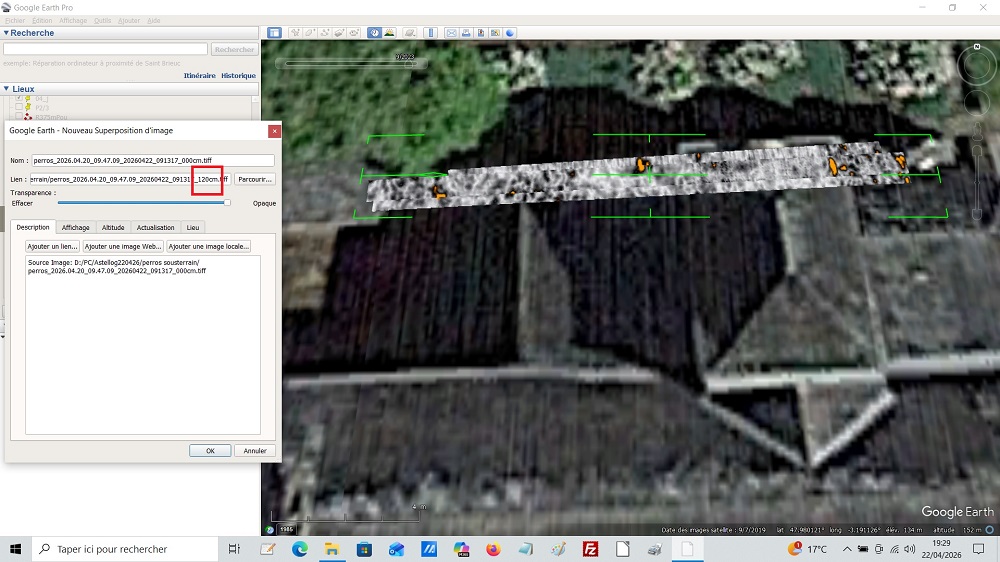 -120cm SOUTERRAIN de la tour (face Nord) - Présentation par couches espacées de 20cm entre le sol (00cm) et la profondeur de 260cm Loupe avec pointeur - Flèches Gauche/Droite - Monter/Descendre - Recadrer avec ascenseur à droite écran |