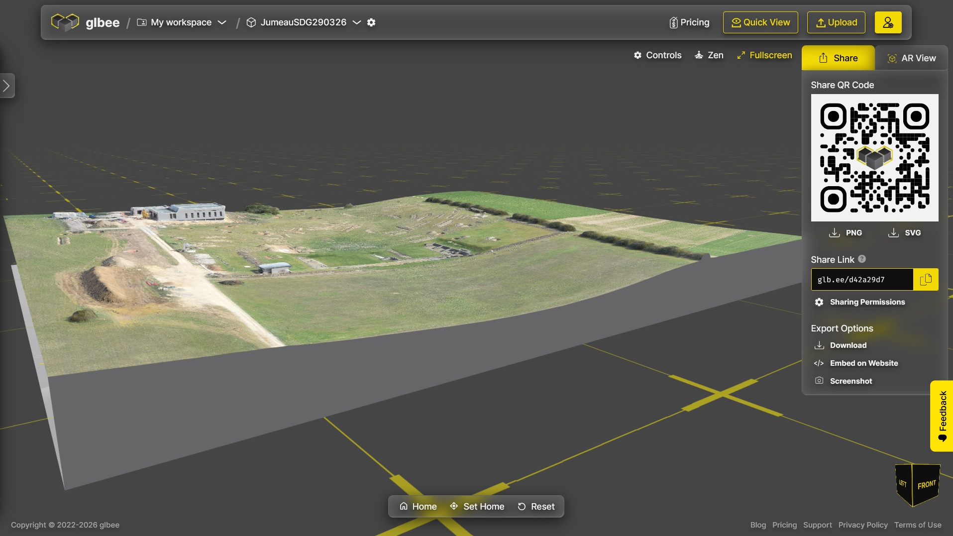 Fig 18 - Agisoft Metashape - Export au format .glb de la surface 3D recadrée plan horizontal