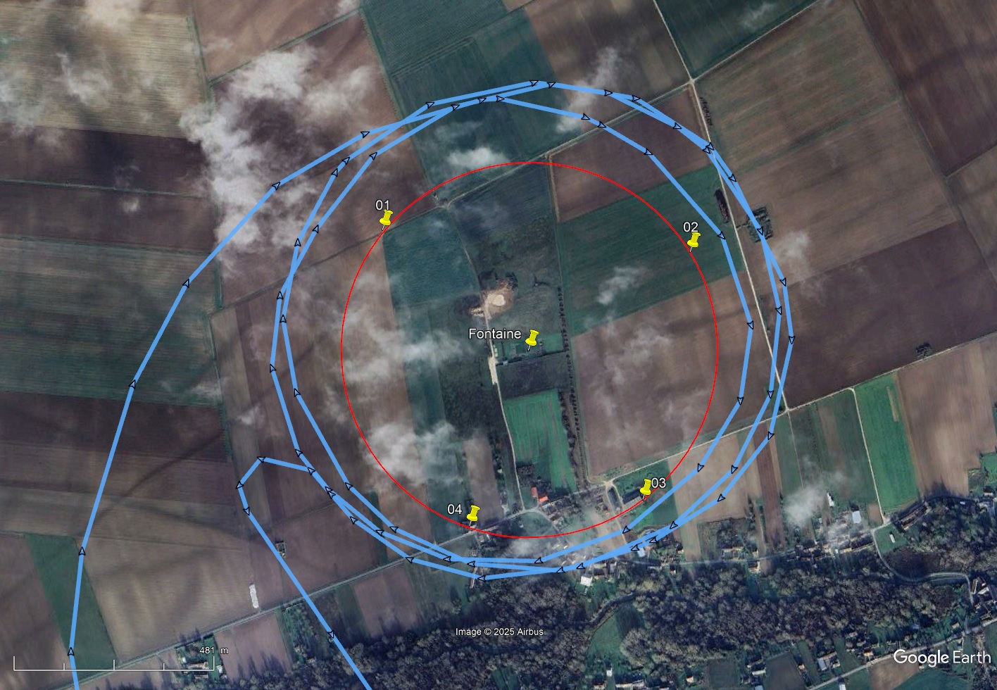 Points de repère pilote-photographe (2 sur Fontaine POI 1, 3 sur Carrefour POI 2)