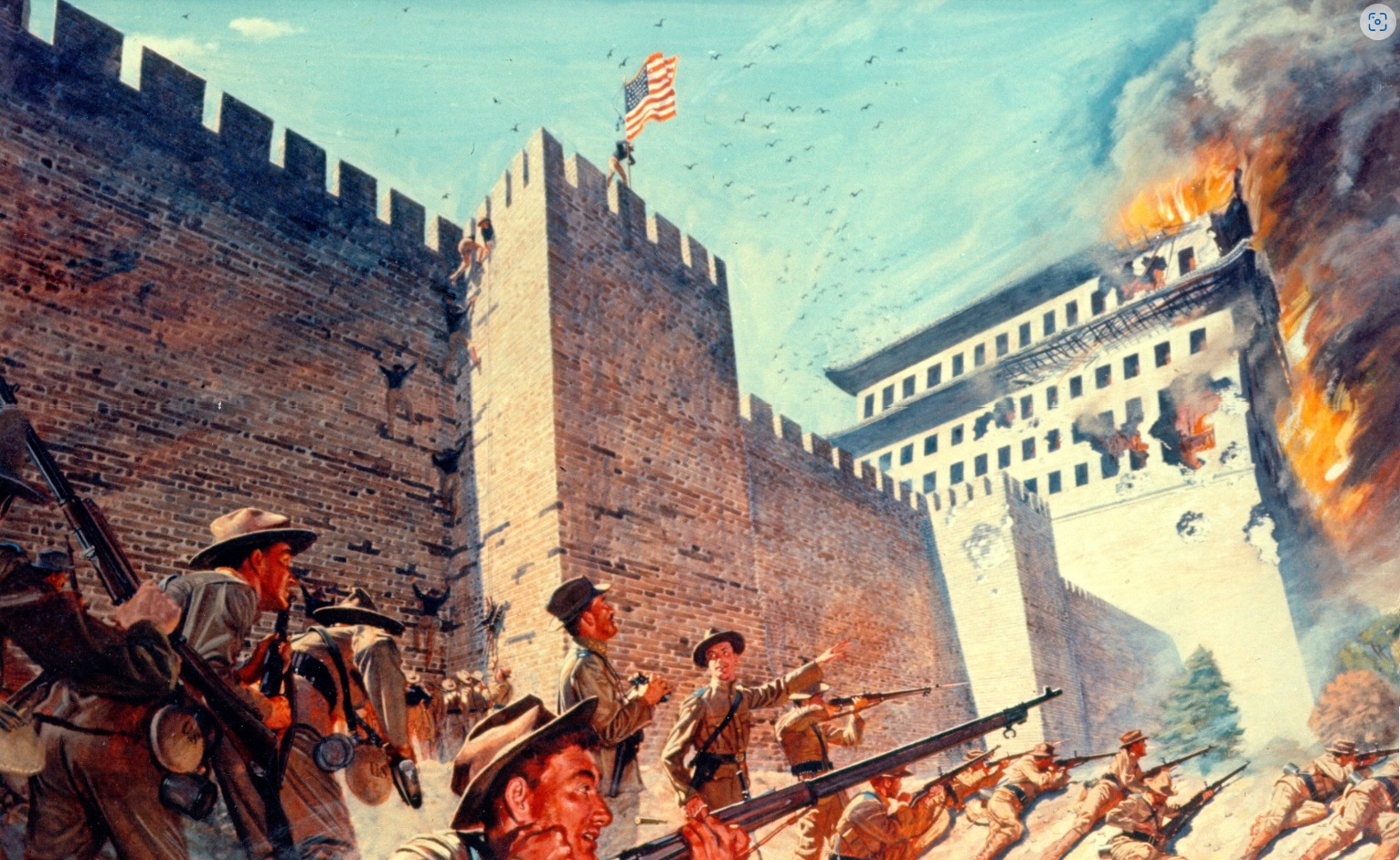 Afficher puis zoomer sur photo "Infantry in Peking" avec tampon US Engineer Office / China Relief Expedition
