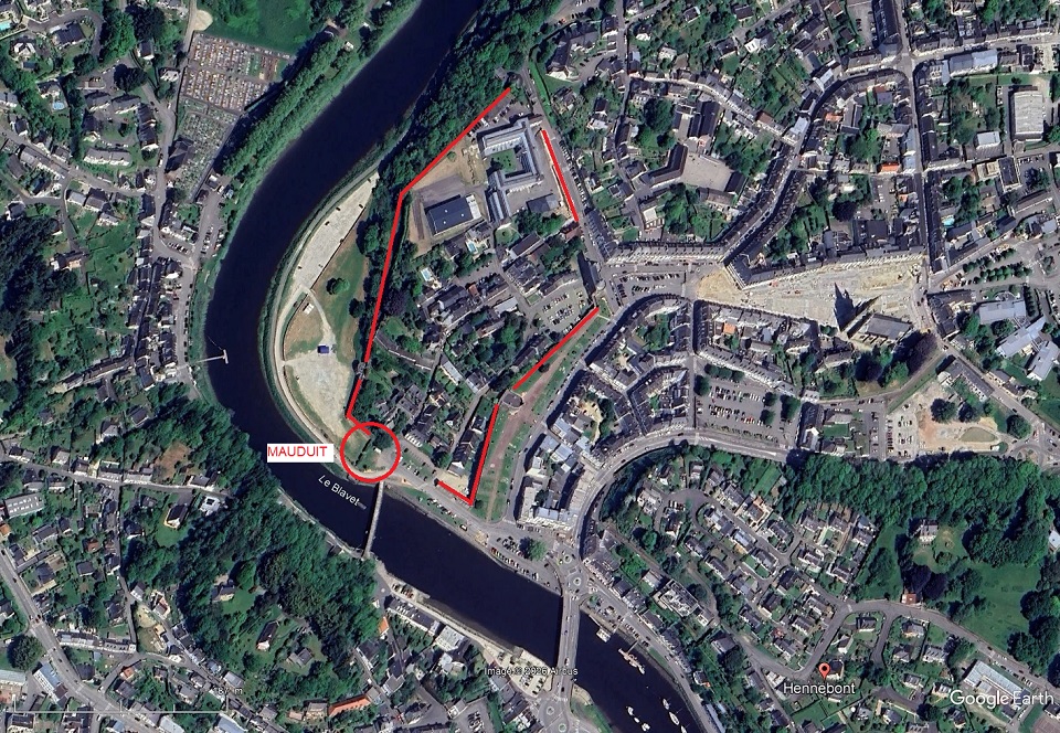 09/02/2026 - GOOGLE EARTH - Hennebont AU DESSOUS DU SOL - Vue verticale avec l'enceinte de la ville close