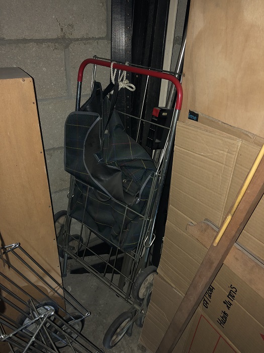 12/12/2025 vers 11h - Fond D - 2 caddies, caisse petit tableau, poignée écran projection, caisse tableau