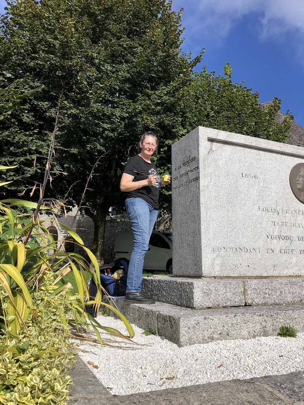 - Début mise en peinture noire du lettrage face G du monument à Bubry