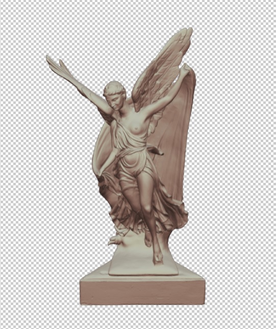 - en haut, 1 original (46cm de haut) du sculpteur E. Sellier fait en argile avec patine bronze à partir photo 1920; a donné naissance à un jumeau numérique fait avec le scanner CREAFORM GoScan SPARK de la société 3D SOLUTIONS (fichier STL);