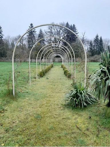 Lundi 23/02/2026 Buis allée de rosiers avec arceaux dans potager - ENTRETIEN - Contours en bleu sur PLAN correspondant au devis 1538 du 20/07/2023