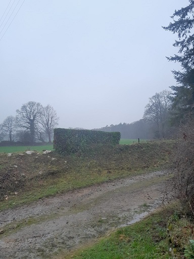 Vendredi 27/02/2026 - TAILLE devis 2602-016 du 23/02/2026 - Lauriers face au grand bûcher (chemin fontaine St-Hervé) - Contours en rouge sur PLAN correspondant au devis 1538 du 20/07/2023