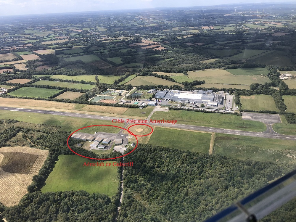 ---22/08/2025 - En vue du club house de l'aéroclub de Guiscriff et de la cible de PA bien connue de Gilles lors de ses formations de "Qualif-largueur" |