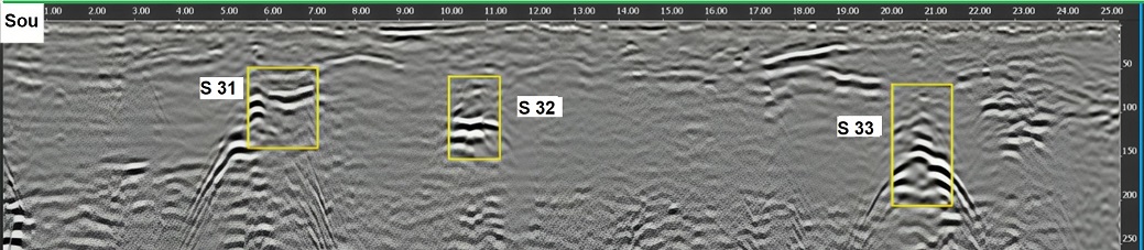 Boyau souterrain 03_05 / Simulation exploitation B Scan sur 25 m de long et 2.50 m de profondeur