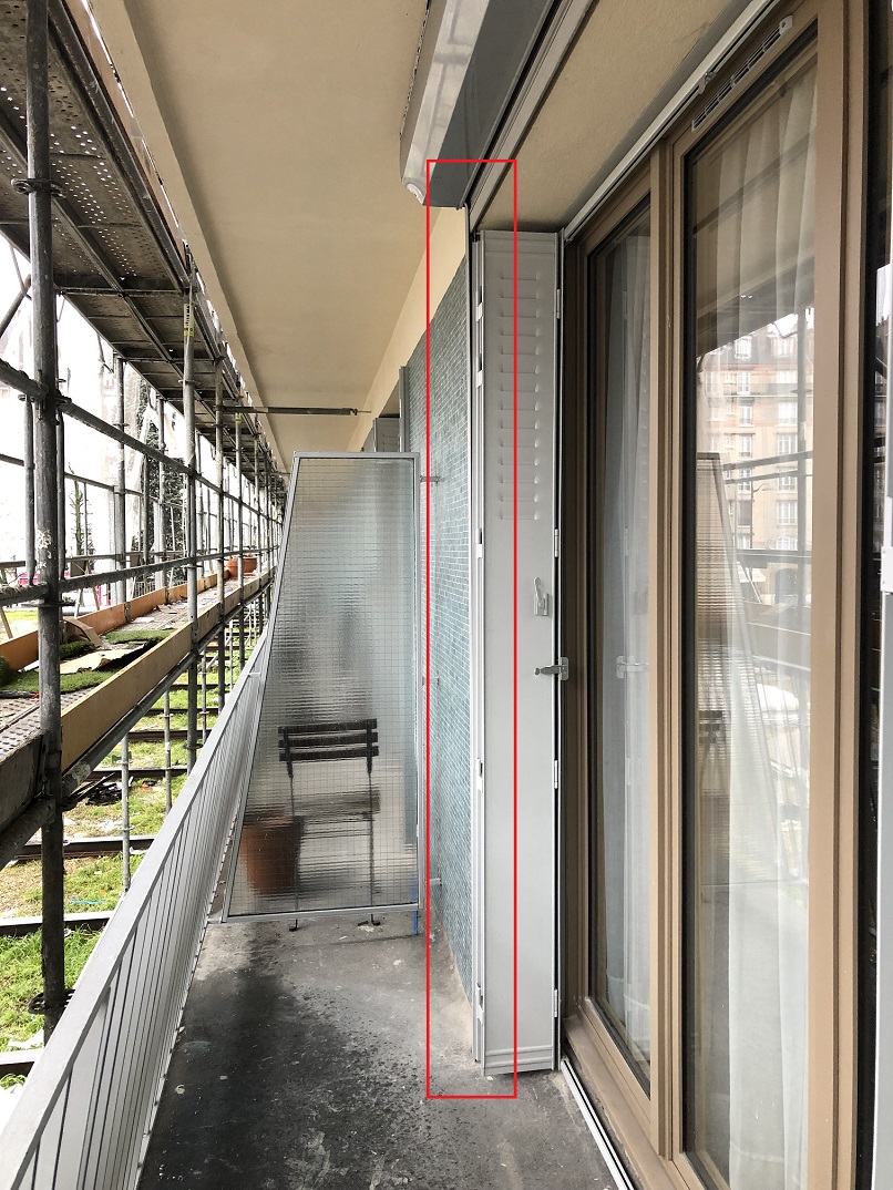 | Lundi 12/01/26 (?) - Montage volet droit - Descente impossible volet métallique roulant tout du long de la glissière de 1cm qui est masquée par le volet vertical replié |