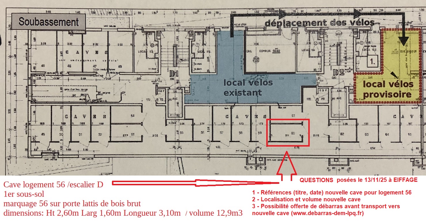 | 12/11/2025 - Localisation Plan CAVE logement 56 avec questions du 13/11 pour EIFFAGE (escalier D / 1er Sous-sol) - Escalier et palier 1er sous-sol |