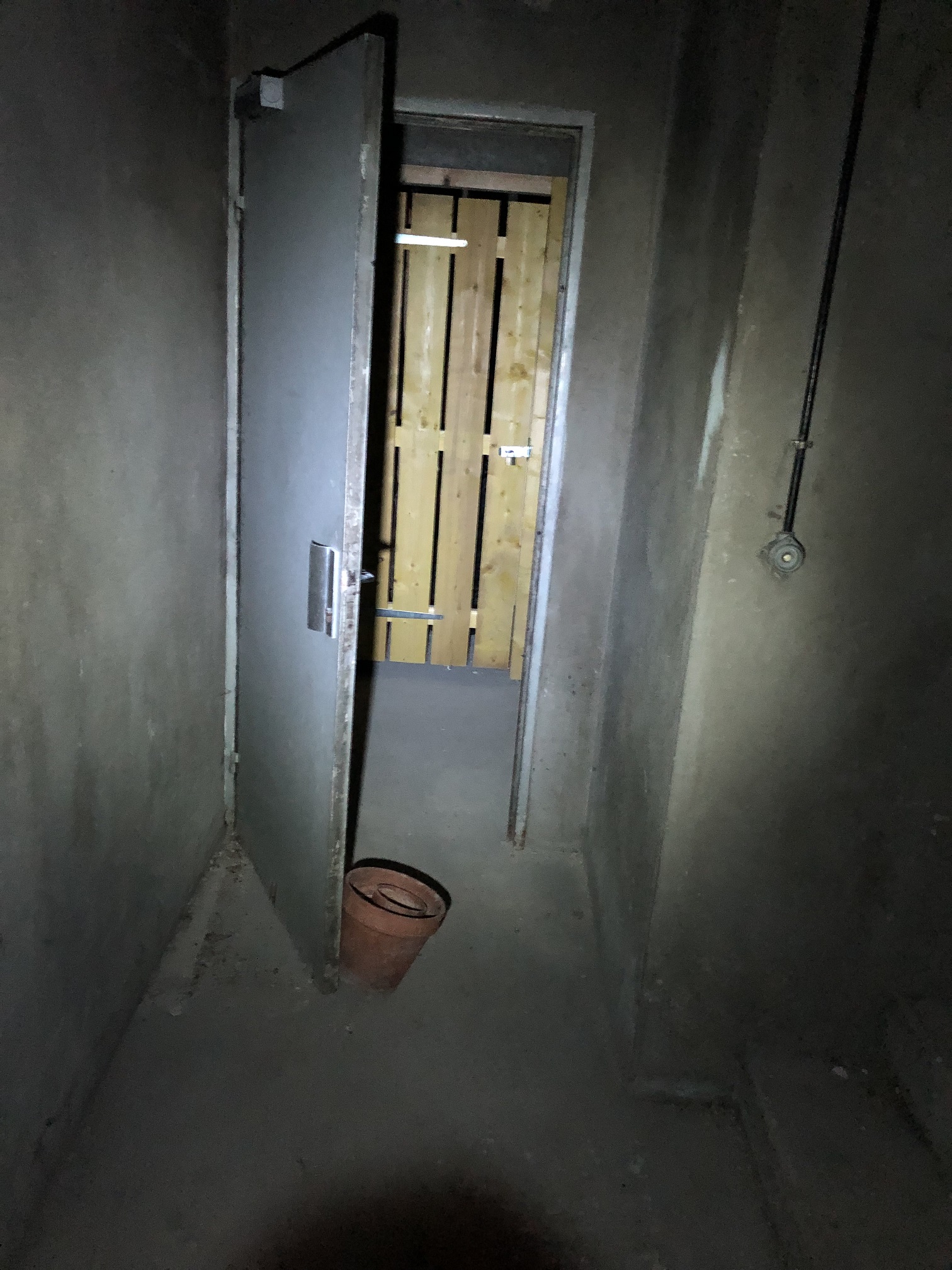 --- avec en descendant au 2e ss, pas d'éclairage automatique avant le bouton du bas à la descente et sur la porte d'accès une serrure à poignée simple ne permettant pas l'ouverture vers le 2e ss (donc porte ouverte en permanence et bloquée par des pôts de fleurs),