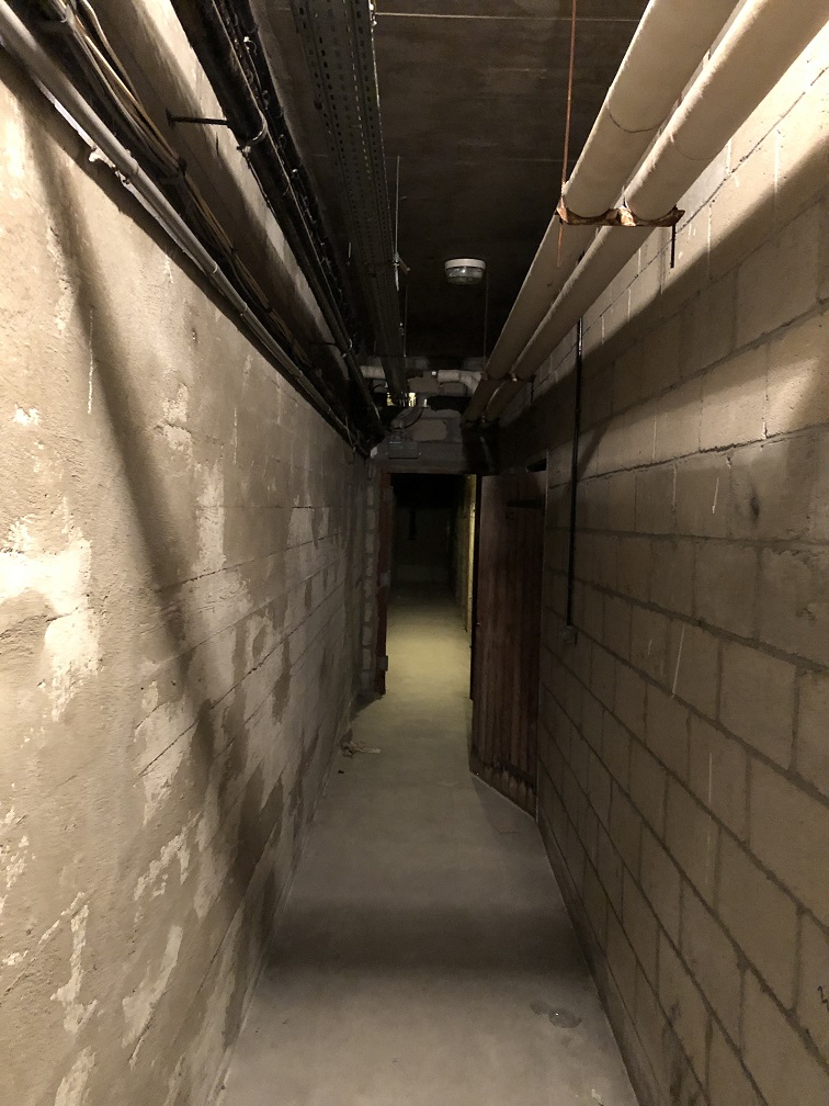 06e Cave 44 / Pas d'éclairage - Diaporama rénovation 19 rue Censier Loupe avec pointeur - Flèches vertes G/D - Ht/Bas et ascenseur gris sur bord droit écran |