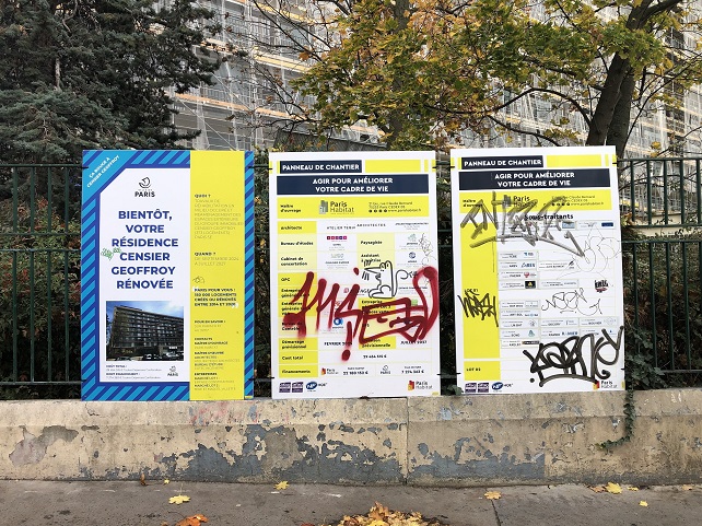 18/11/2025 Voir courriel (PDF) à Séverine Zou Coordinatrice travaux EIFFAGE - Liens du PDF disponibles: - Dégradations, - rayure en Z en haut porte, au dessus oeilleton, - Sécurité = idem "rayure en Z", - photo. |