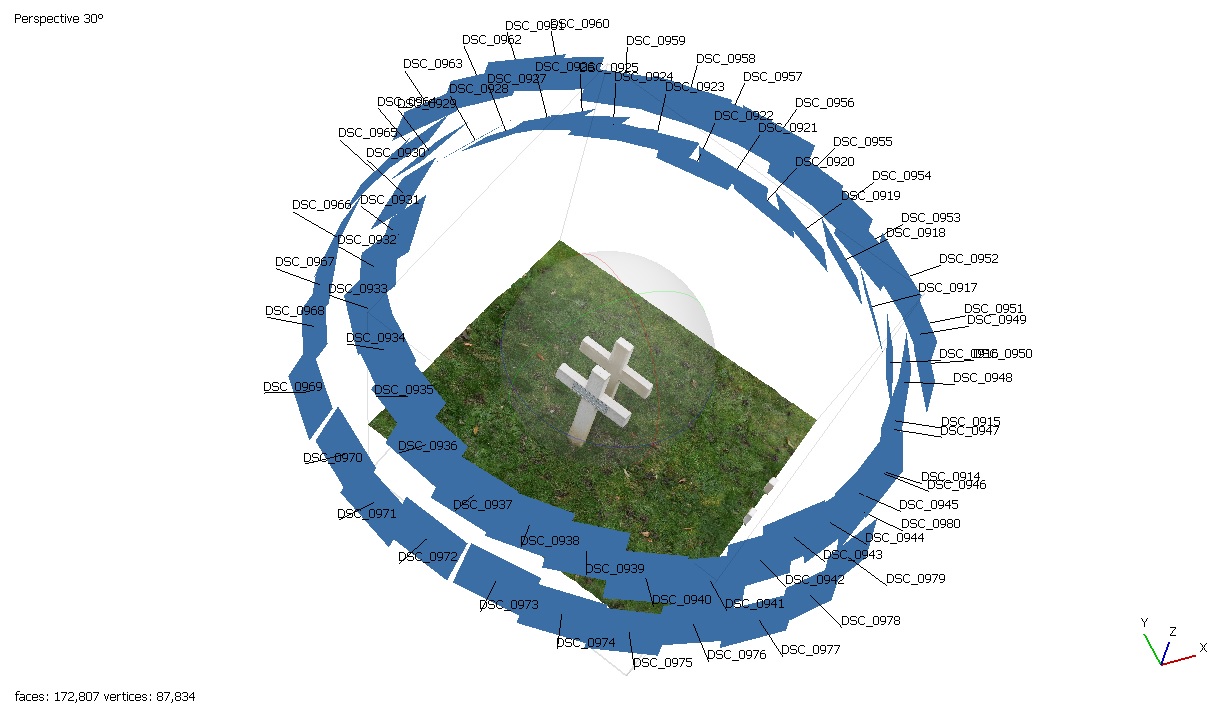 - soit comme à la nécropole de Belleray pour y retrouver un oncle, faire un jumeau numérique dont les tombes ont été localisées grâce aux ombres portées et ont été répertoriées dans une liste nominative partielle avec l'aide de "référents" de PHENIX MEUSE;
