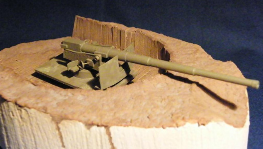 Maquette de "Canon de 140 mm" (Forum de Minitracks) monté à terre derrière une banquette